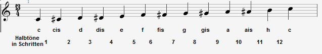 Zusammen erhalten wir 12 Halbtonschritte bis zur Oktave.