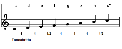 Die Tonleiter besteht aus 7 Ganztönen um dann mit dem 8. Ton in der Oktave zu enden Diese wird Unterteilt in Halbtöne.